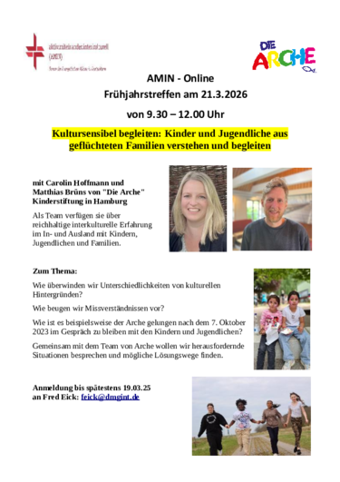 Eine der wesentlichen AMIN-Veröffentlichungen der letzten 10 Jahre war der Flyer „Zusammen - wachsen: Migration und Integration" mit Terminen aus der Migranten- und Flüchtlingsarbeit. Während im ersten Jahr 2016 noch 15 von AMIN organisierte Regionalkonferenzen der wesentliche Inhalt waren, ist 2026 nur noch eine AMIN Regionalkonferenz darin zu finden. Dafür wurde das Spektrum um AMIN-Online-Konferenzen, deutschlandweite Konferenzen und Fachtagungen, Missionarische Veranstaltungen und Einsätze und internationale Veranstaltungen erweitert. Der Inhalt reicht von der Begleitung traumatisierter Menschen über Wochenenden für interkulturelle Paare bis zu Kalenderverteilaktionen und Internationale Gottesdienste.